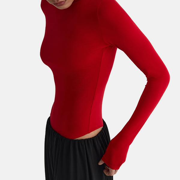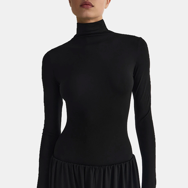Боди с длинным рукавом и цельнокроеным воротником-стойкой. Комфортно прилегает к телу и подчеркивает линии фигуры. Изделие выполнено из модала — мягкого, тактильно приятного искусственного материала с легким блеском с лицевой стороны. Отличительные особенности ткани — экологичность, гипоаллергенность и низкая сминаемость. Состав: 93% модал, 7% эластан