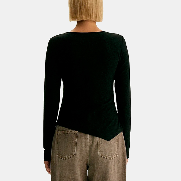 Трендовый лонгслив станет основой стильных образов к любому случаю. Комфортный материал на основе вискозы с добавлением эластана и нейлона красиво садится по фигуре, даёт свободу движения, держит форму и цвет, устойчив к пилингованию. Эффектная и элегантная модель с асимметричным низом и лёгкой драпировкой помогут проявить индивидуальность в повседневных образах. Лонгслив даёт свободу стилизаций. Дополнить образы с ним можно любыми джинсами, шароварами, пышной юбкой или деловым костюмом. Состав: 60% вискоза, 31% нейлон, 9% эластан