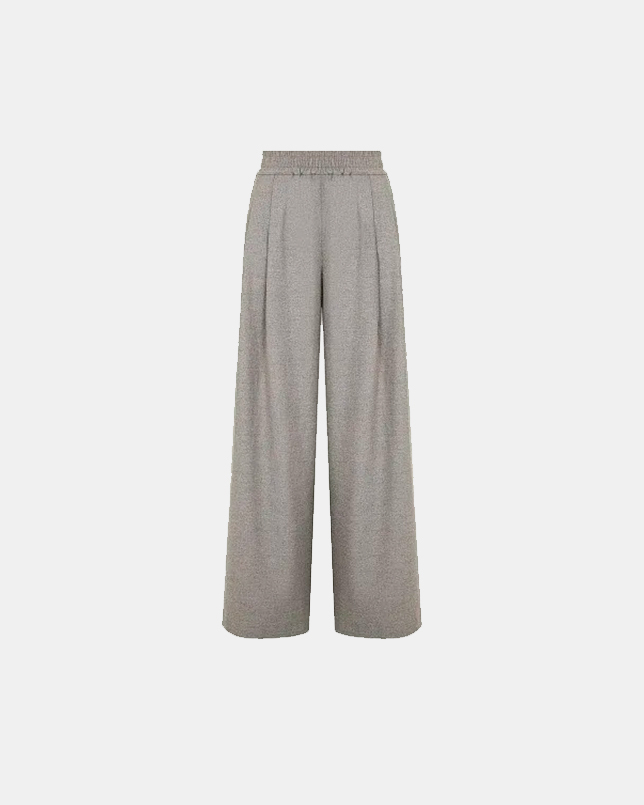 Брюки палаццо в элегантном оттенке серого сделают образ роскошнее. Стильная высокая посадка на широкой резинке обеспечит комфорт. Брюки изготовлены из комфортного материала с содержанием вискозы и эластана, без подкладки. Состав: 64% полиэстер, 34% вискоза, 2% эластан